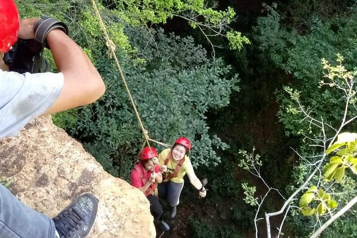 Anda akan kami ajak untuk menuruni perut bumi dengan cara dikerek sedalam +/- 70m kemudian berjalan kaki menyusuri bebatuan purba menuju kedalam goa purba